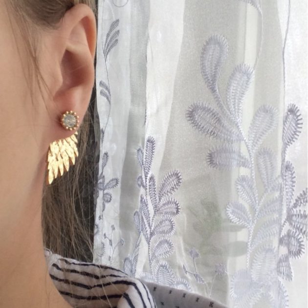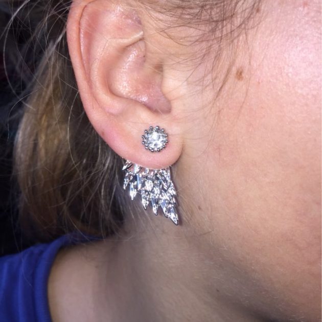 Angel Wings Crystal Silver Plated Ear Stud Earrings