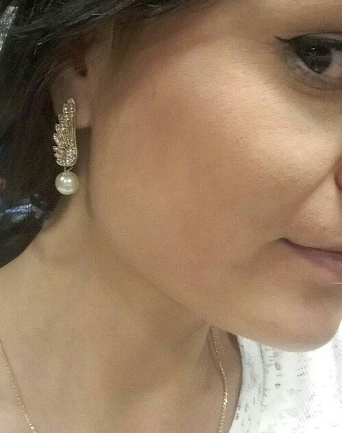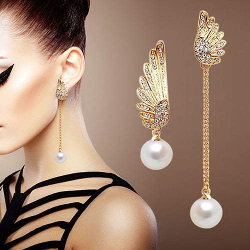 Angel Wings Rhinestones Faux Pearl Dangle Earrings